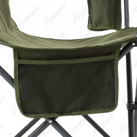 Удобное широкое мягкое сиденье с тканевые подлокотники и карманом для мелочей. В правом подлокотнике расположен подстаканник из ткани для стакана или банки с напитком.
