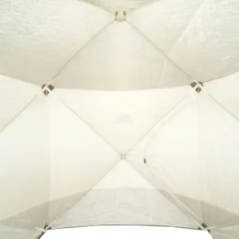 Благодаря своему составу, в который входит 100% полиэстер, материал неприхотлив в уходе, легко подвергается стирке и не требует глажки. Серия Premium предусматривает возможность крепления пола на текстильную застежку Velcro. Материал: Oxford 240D PU 1000. Плотность материала: 3 слоя. Размеры: 2,35 х 2,0 х 2,10 м Размеры в чехле: 1570 х 450 х 300 мм Вес: 14,3 кг