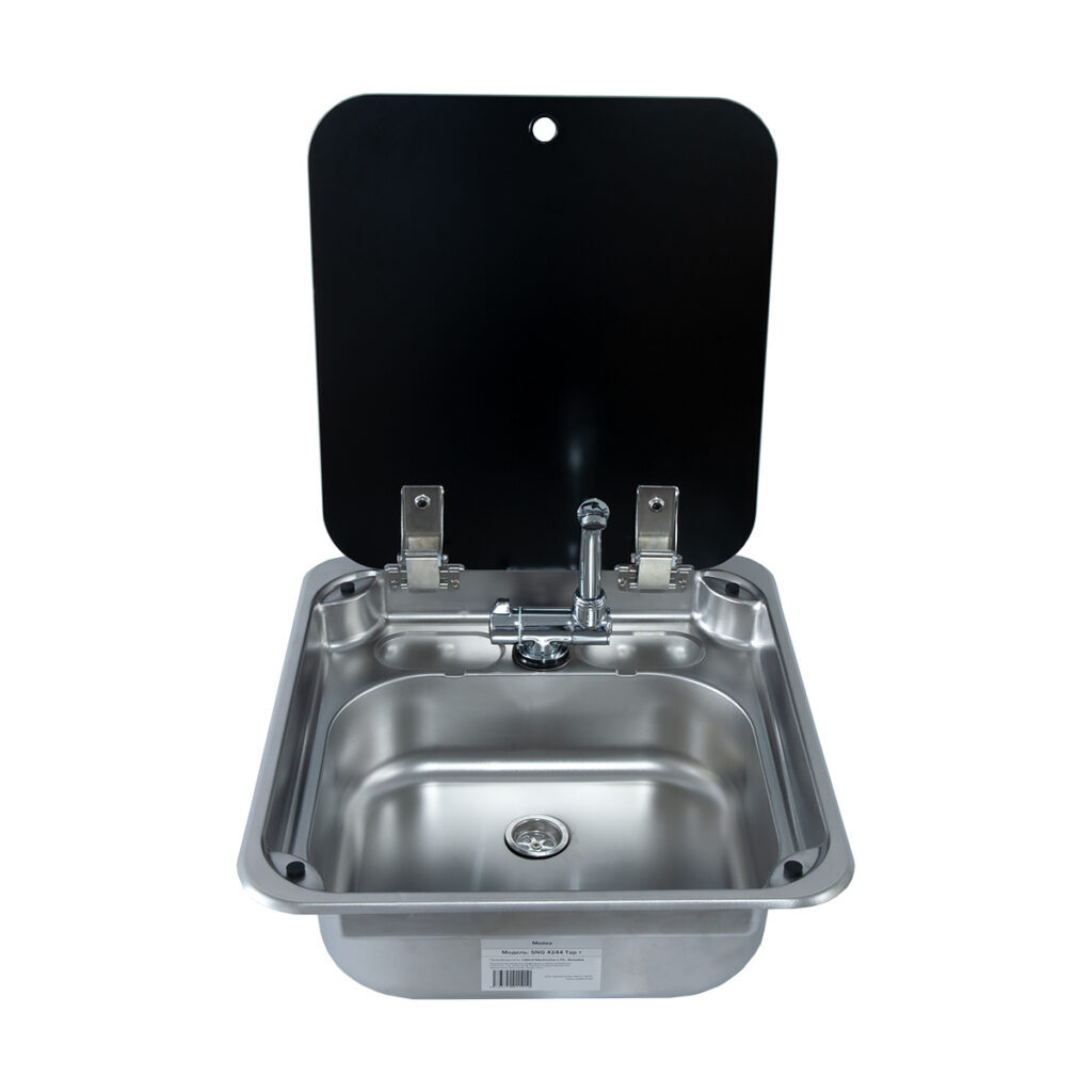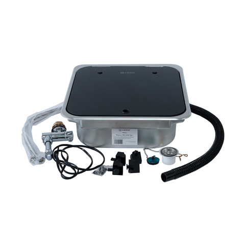 мойка,смеситель, комплект шлангов для подвода горячей и холодной воды, сифон, пробка сливного отверстия, уплотнительная лента, комплект крепежа для установки, инструкция |