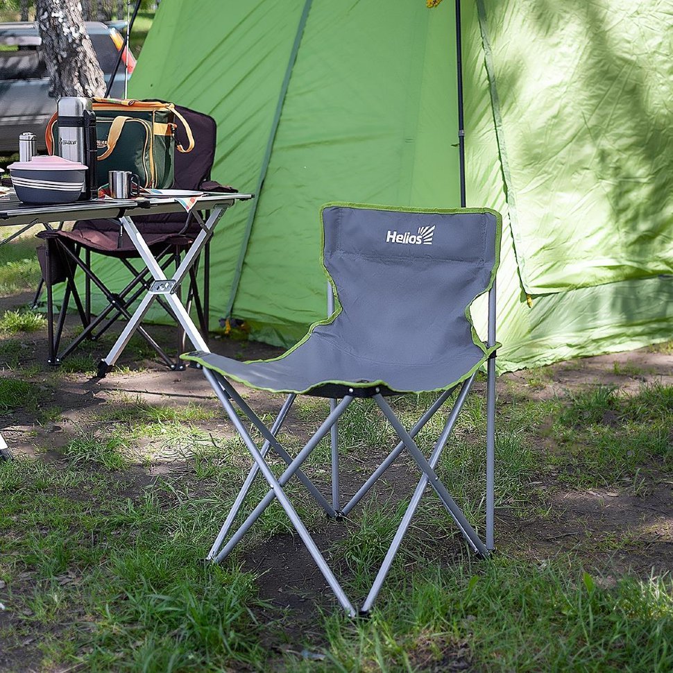 Компактный стул складной туристический Helios HS-96801-G для отдыха на природе. Быстро складывается и раскладывается. Легкий, но надежный, может удерживать вес до 100 кг. Чехол для транспортировки и хранения.