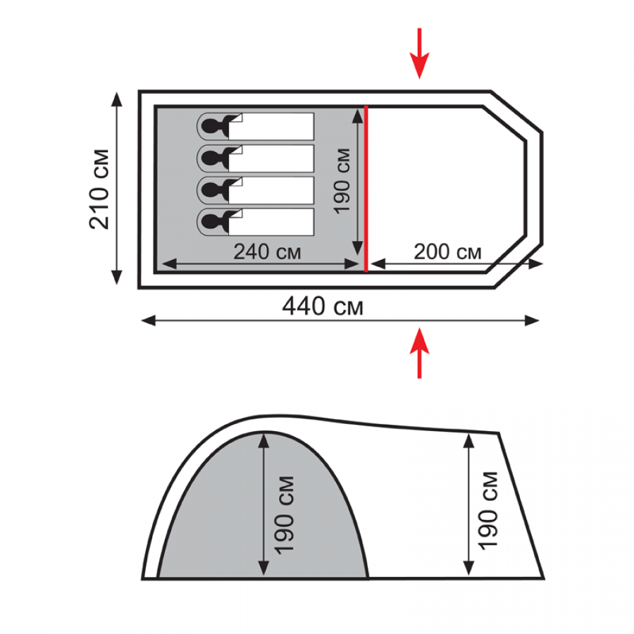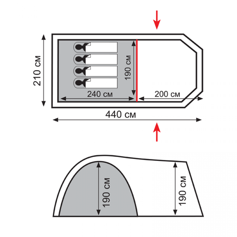 | Материал тента | Полиэстер 75D/190T RipStop |