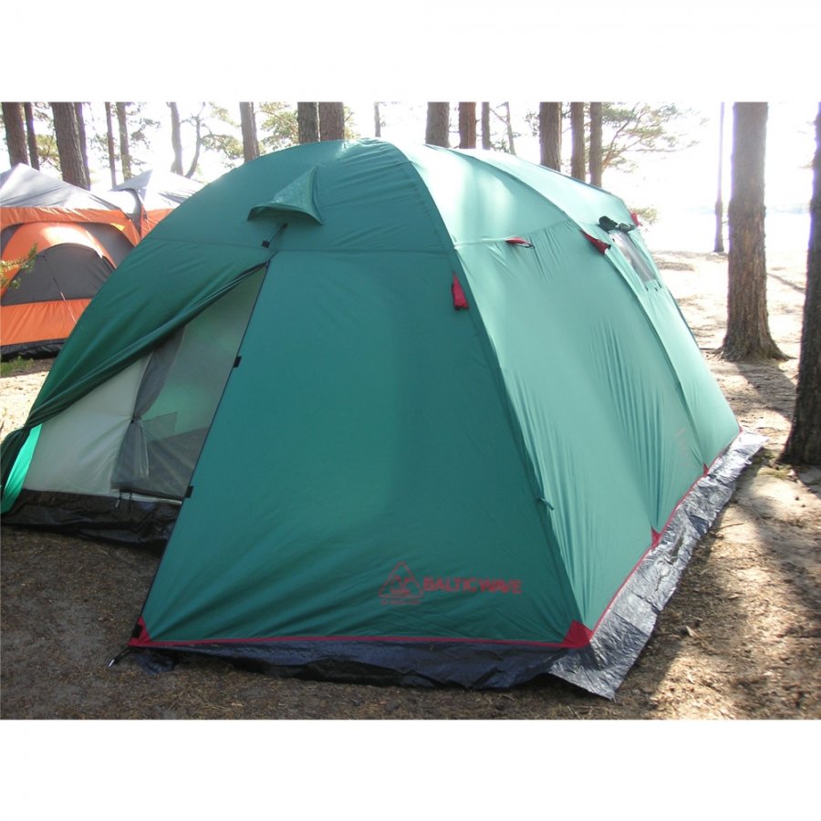 Большая пятиместная кемпинговая палатка BALTIC WAVE 5 (V2). Снабженная по всему периметру юбкой, устойчивая к ветру и сильным длительным осадкам - эта модель подойдет рыбакам, отдыхающим у воды или на открытых простанствах продуваемого морского побережья. Двери тамбура снабжены прозрачными смотровыми вставками-окнами.