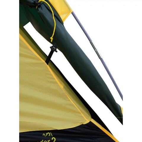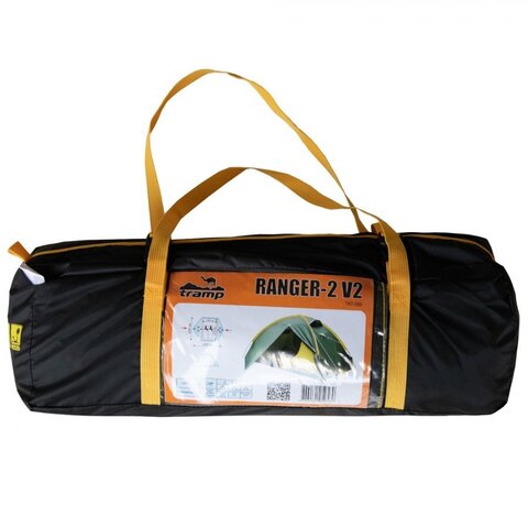 Двухместная палатка Ranger 2 V2 с внешним каркасом. Для несложных походов, рыбалки, выездов к речке на выходные. Вес 3,4 кг. Два входа — у каждого туриста свой вход, не надо перелазить через соседа. Хорошая проточная вентиляция, не так душно летом. Два тамбура: один большой 80 см, в нём можно готовить, второй стандартный — 50 см, для вещей и обуви.