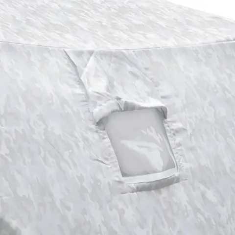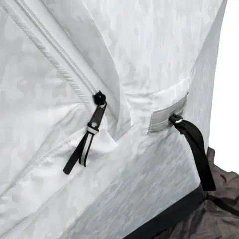 Палатка зимняя «Следопыт «Куб» «Premium» обеспечивает комфорт на рыбалке в зимнее время года. Благодаря системе крепления дуг «хабы» палатки очень быстро переводятся из транспортного положения в рабочее состояние. «Хаб» выполнен из морозостойкого, ударопрочного материала – полиамид РА-6. Разложить палатку удается всего за несколько минут. Каркас изготовлен из прочного стеклопластикового прутка d 10 мм. В качестве материала для палатки использована надежная ткань Oxford 240D PU1000, она дублируется с подкладочной тканью «термостежка», подкладка 190Т с синтепоном 100 г/м². Такой материал отличается высокой мягкостью, прочностью, а также долго удерживает тепло.